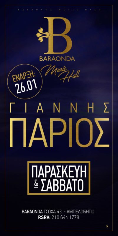 Στο Baraonda Music Hall, ο Γιάννης Πάριος, φέρνει ένα πρόγραμμα με τις μεγαλύτερες επιτυχίες του.