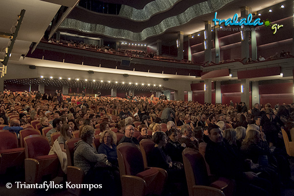Η έναρξη αιφνιδίασε το κοινό, αφού δυο μικρά παιδιά ανέβηκαν στην σκηνή, πιασμένα χέρι – χέρι. Το ένα με ένα ακορντεόν, ενώ το άλλο σιγοτραγούδαγε, μέχρι να μπουν οι δυο πρωταγωνιστές της βραδιάς. Το χειροκρότημα φυσικά είχε μεγάλη διάρκεια, αφού το κοινό ήταν αρκετά ενθουσιασμένο. Η παράσταση δεν άργησε να ξεκινήσει, αφού πρώτα ο Μίμης Πλέσσας είπε δυο λόγια γι’ αυτή την συνεργασία, μιλώντας με τα καλύτερα λόγια για τον Γιάννη Πλούταρχο.