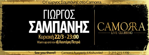 Κυριακή 22 Μαρτίου, στις 11 το βράδυ το «Camorra» υποδέχεται τον Γιώργο Σαμπάνη.