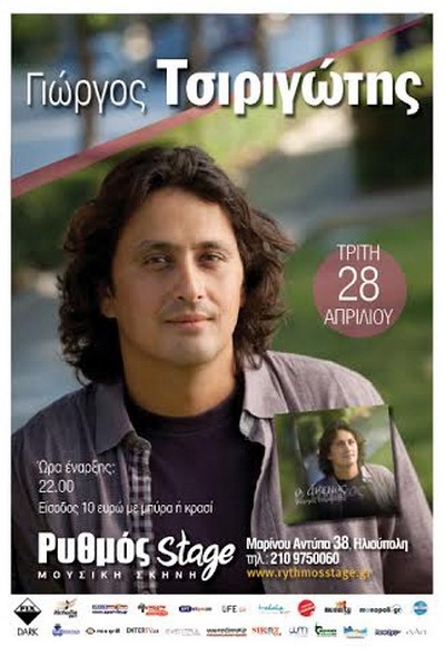 Ο Γιώργος Τσιριγώτης επανέρχεται στο Ρυθμός Stage για να μας παρουσιάσει τα καινούργια του τραγούδια! 28/4