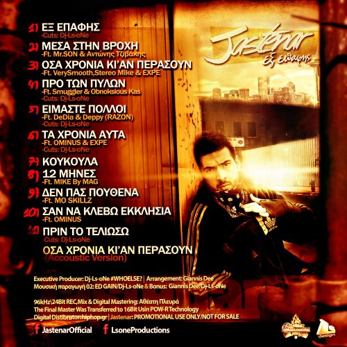 Νεότερος εκπρόσωπος ο Jastenar (κατά κόσμον Βαγγέλης Γελέκης) με το ντεμπούτο άλμπουμ “Εξ Επαφής” σε παραγωγή Dj Ls One. Μία δουλειά με προσοχή και στην τελευταία λεπτομέρεια, καλύπτει ένα μεγάλο φάσμα ήχων, στυλ και θεματολογίας. Έτσι σίγουρα θα βρεις κάποιο track να βάλεις στα “αγαπημένα”.
