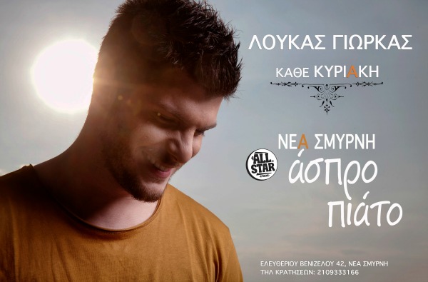 Ο Λούκας Γιώρκας μας προσκαλεί σε ένα μοναδικό live party χωρίς όρια κάθε Κυριακή από νωρίς μαζί με την πιο ζεστή παρέα… την παρέα του «Άσπρο Πιάτο» Νέας Σμύρνης! Μην λείψει κανείς…