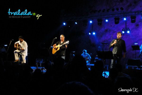 «Είσαι εδώ μα και πουθενά» και τρία ανέκδοτα τραγούδια συνέθεσαν την έναρξη της βραδιάς, πριν υποδεχτεί στην σκηνή την Νανά Μπινοπούλου. Η μουσική του «σύντροφος» στις φετινές του καλοκαιρινές περιπλανήσεις σ’ όλη την Ελλάδα ερμήνευσε το «Άσπρο περιστέρι» και το «Δυο τρελοί σ’ ένα καζάνι», μιας και η Μελίνα Κανά δεν κατάφερε να παραβρεθεί στην συναυλία.