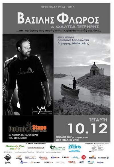 Επόμενος σταθμός της χειμερινής του περιοδείας η φιλόξενη μουσική σκηνή Ρυθμός Stage στην Ηλιούπολη την Τετάρτη 10 Δεκεμβρίου παρέα με εκλεκτούς φίλους καλεσμένους την Λαμπρινή Καρακώστα και τον Δημήτρη Μπάκουλη.