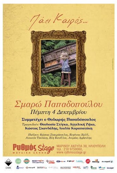 Η μουσική σκηνή Ρυθμός Stage παρουσιάζει τη στιχουργό Σμαρώ Παπαδοπούλου, την Πέμπτη 4 Δεκεμβρίου, σε μια μουσική βραδιά εφ΄ όλης της ύλης.