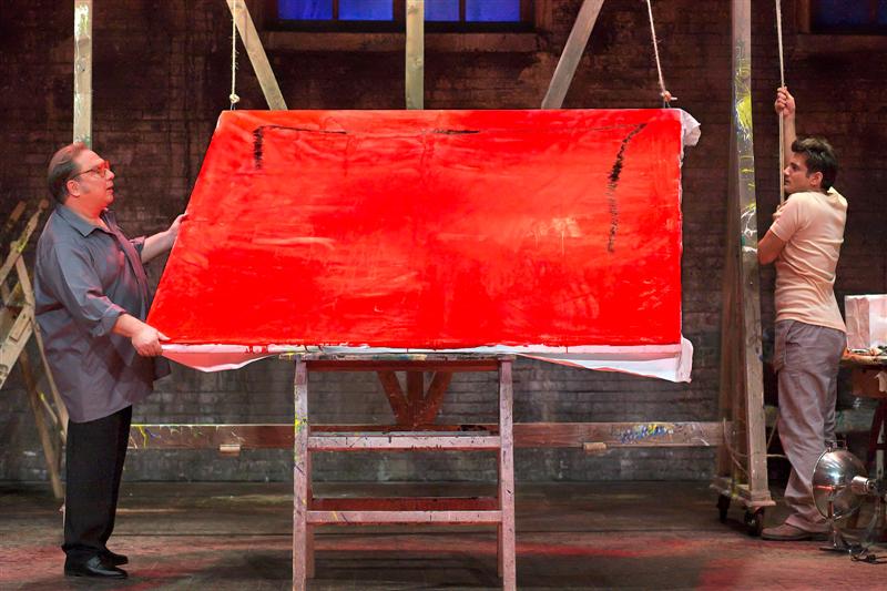 Το έργο «γαντζώνεται» αρχικά από το θέμα των εικαστικών αλλά σιγά – σιγά υπερβαίνει τα όρια της τέχνης και μιλάει για την ίδια τη ζωή. Κόκκινο δεν είναι μόνο το έντονο χρώμα που βάφει ένα καμβά. Κόκκινο είναι το χρώμα του αίματος, του πάθους, της δημιουργίας, της ζωής! Το έργο θίγει με έξυπνη και ρεαλιστική ματιά το χρήμα, τις σχέσεις, την ανταλλαγή και το ξεπούλημά τους και καταφέρνει να μεταφέρει στο υποσυνείδητο των θεατών μια σειρά από ισχυρούς προβληματισμούς. Τι μπορεί να πεις κανείς πια για το Σταμάτη Φασουλή; Είναι απ’ τους σημαντικότερους θεατράνθρωπους του ελληνικού θεάτρου εν ζωή και κάθε μα κάθε φορά το αποδεικνύει με το πιο εύστοχο τρόπο! Με κριτικό, ειρωνικό και σαρδόνιο ύφος πετυχαίνει έναν εκπληκτικό Ρόθκο με δεξιοτεχνία, ακρίβεια και απόλυτη εκφραστικότητα… και εννοώ ακόμα και φυσιογνωμικά! Δηλαδή αν δεν γνωρίζει κανείς το πρόσωπο του ζωγράφου και ξεφυλλίσει το πρόγραμμα της παράστασης, βλέποντας τις φωτογραφίες τους είναι απίστευτο πόσο εύκολα θα νομίσει ότι αυτά τα δύο πρόσωπα μοιάζουν κιόλας! Ο Οδυσσέας Παπασπηλιόπουλος, με υποκριτικό νεύρο αλλά και μέτρο εκεί όπου κρίνεται απαραίτητο, σημειώνει μια υποδειγματική δουλειά στο ρόλο του βοηθού. Μάλιστα στο πρόσφατο παρελθόν ο Σταμάτης Φασουλής εκφράστηκε με διθυραμβικά σχόλια για την υποκριτική του δεινότητα, αλλά το καλύτερο απ’ όλα είναι που έχεις την ευκαιρία να το διαπιστώνεις με τα ίδια σου τα μάτια όταν ο ίδιος βρίσκεται επί σκηνής. Γιατί αποδεικνύει περίτρανα πως είναι ένας από τους καλύτερους ηθοποιούς της γενιάς του και είναι ελπιδοφόρο και ευτυχές το γεγονός που καλλιτεχνικές ιδιοσυγκρασίες σαν το Σταμάτη Φασουλή δίνουν χώρο απλόχερα σε, νεότερους από εκείνον, και τόσο ταλαντούχους ανθρώπους. Σκηνικά, κοστούμια, φωτισμοί και μουσική επιμέλεια δεν θα μπορούσαν να είναι καλύτερα. Για παράδειγμα, η μουσική που «ντύνει» τη παράσταση είναι τα μουσικά έργα που απολάμβανε ο Ρόθκο κατά τις περιόδους δημιουργίας του. Αυτό εννοώ όταν τονίζω ότι όλα είναι αυστηρώς μελετημένα εώς και τη παραμικρή λεπτομέρεια! Σπουδαίες οι «δυνατές» σκηνές του έργου, δομημένες με ένταση αλλά και με μια σπάνια εσωτερικότητα, «υποκλίνονται» εν τέλει σε ένα εξίσου δυναμικό αλλά και αισιόδοξο φινάλε.