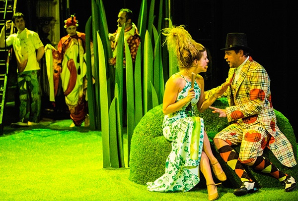 Οι ηθοποιοί φέρουν επί σκηνής με μπρίο και ζηλευτό θάρρος τις (παράδοξες) φυσιογνωμίες της Φρουτοπίας φωτίζοντας την σαρκαστική πένα του Τριβιζά. Ο Αιμίλιος το μήλο, η Βεατρίκη το σπαράγγι, ο Βλάσης το βλίτο, η Φρουρού η φράουλα, ο Βρασίδας το κρεμμύδι, η Μάτα η Ντομάτα, ο Θάνος το κολοκυθάκι, η Μαρουλίτα το μαρούλι και η Πιπεριά η φαρμακόγλωσσα, o Λάμπρος το ραδίκι του βουνού φέρνουν τους χυμούς και τα αρώματα τους στο ανακαινισμένο Rex. Με τη φωνητική διδασκαλία της Γιάννας Βασιλείου και τις χορογραφίες του Ρήγου οι ηθοποιοί απογειώνουν τα μουσικά τους νούμερα δίνοντας ένα αρμονικό σκηνικό αποτέλεσμα. Μεγάλες πρωταγώνιστριες η Φρουρού η φράουλα (ανερχόμενη τραγουδίστρια στη Φρουτοπία), η Μάτα η Ντομάτα, ενώ προσωπικά ξεχωρίζω το Βλάση το βλίτο (που είναι άλλο… φρούτο!). Ο κάθε θεατής θα βρει τον αγαπημένο του ήρωα σε μια παράσταση που σε εκπλήσσει θετικά καθόλη τη διάρκειά της.