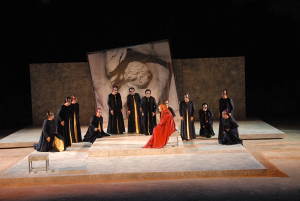 Τα σκηνικά και τα κουστούμια ήταν σε απόλυτη χρωματική αρμονία. Ο σκηνοθέτης Σπύρος Ευαγγελάτος, ίσως ο σπουδαιότερος σκηνοθέτης της εποχής μας, δε σκηνοθετεί απλά, αλλά «διδάσκει» τραγωδία.
