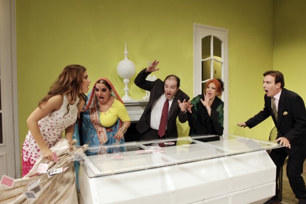 Η αγαπητή σε όλους Χρυσούλα Διαβάτη, πρωταγωνιστεί και κρατάει γερά τον ρυθμό της κωμωδίας. Το κοινό μοιάζει θετικά προκατειλημμένο απέναντί της, αφού ακόμη και με τις άνοστες ατάκες του έργου και του ρόλου της, «χαζογελά» περιμένοντας εμφανώς κάτι καλύτερο. Ο Αλέξανδρος Αντωνόπουλος, η Σοφία Μουτίδου και η Βάσω Λασκαράκη την ακολουθούν άριστα στους ίδιους ρυθμούς ενώ από την άλλη, μάλλον πιο αδύναμος, αναλογικά με τον μεγάλο ρόλο του, δείχνει ο Φώτης Σπύρος. Έκπληξη αποτελεί ο αγνώριστος Μιχάλης Ρέππας (είναι μεταμφιεσμένος σε Ινδό μπάτλερ). Οι Χάρης Γρηγορόπουλος και Δημήτρης Λέκκος, ικανοποιούν απόλυτα με την σύντομη συμμετοχή τους. Με μια δεύτερη ματιά ωστόσο, παρατηρείς ηθοποιούς – ρολίστες, σε ρόλους που τους έχεις δει χιλιάδες φορές, με ξεπερασμένα κωμικά τεχνάσματα και σε χαρακτήρες τετριμμένους, με χιλιοειπωμένες και συχνά κακόγουστες ατάκες. Φαντάζομαι το 1996, όταν πρωτοανέβηκε το έργο, οι απαιτήσεις του κοινού ήταν πολύ λιγότερες. Μετά από 16 χρόνια όμως, νομίζω ότι το κοινό είναι πιο εκπαιδευμένο και εύκολα ξεχωρίζει το καλό από το κακό, το φρέσκο από τα παλιακό και το πνευματώδες από το ανόητο.