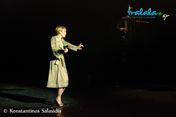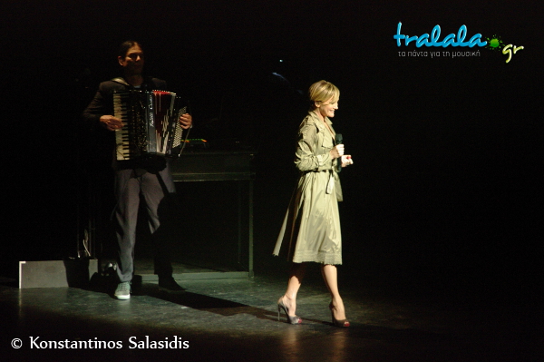 Η βαθιά φωνή, η φινέτσα, η ζωντάνια, η έκφραση, η ατμόσφαιρα που δημιουργεί και η τρομερή αύρα της την χαρακτηρίζουν απόλυτα. Τόσο που δεν σε αφήνει να γυρίσεις το βλέμμα σου αλλού. Είναι σταρ -αν και απεχθάνομαι τον όρο και όσα προσδιορίζει μέσω του ανόητου Lifestyle των προηγούμενων χρόνων- είναι πραγματική σταρ! Αρκεί να περπατήσει από την μια άκρη της σκηνής στην άλλη για να σε κατακτήσει. Και ερμηνευτικά σε κερδίζει αμέσως, κάνοντας το μυαλό σου να αποφεύγει αυθόρμητα την σύγκριση με την ‘’αόρατη’’ πρωταγωνίστρια Πιάφ.