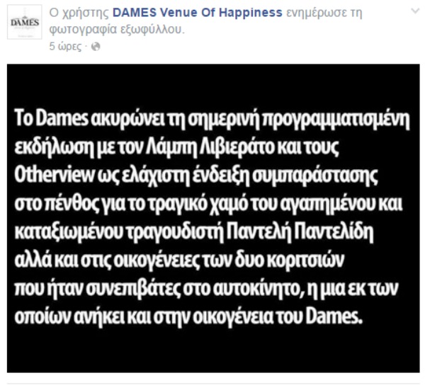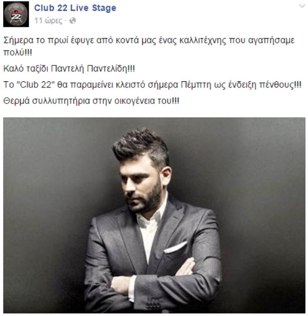 Ποια νυχτερινά μαγαζιά θα παραμείνουν κλειστά ως ένδειξη πένθους για τον άδικο χαμό του Παντελή Παντελίδη;