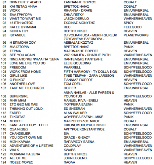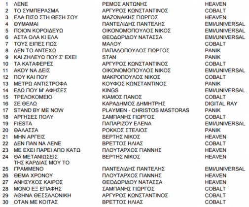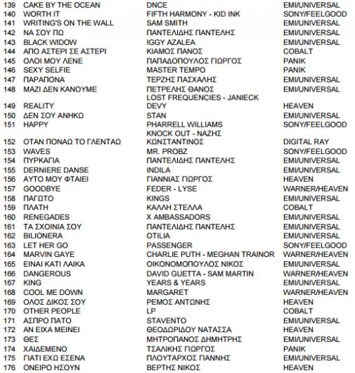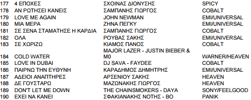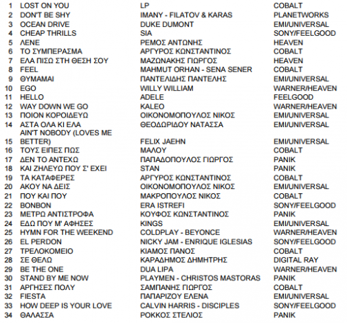 Ποια ήταν λοιπόν τα τραγούδια που ξεχώρισαν το 2016; Ποια ήταν εκείνα τα singles που παίχτηκαν περισσότερο στα ελληνικά ραδιόφωνα σύμφωνα με το official IFPI Airplay Chart;