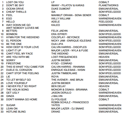 Ποιο τραγούδι αναδεικνύουν στην κορυφή του 2016 τα επίσημα IFPI Airplay Charts;;;