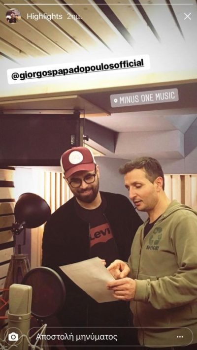 Ο δημοφιλής καλλιτέχνης που δεν σταματά λεπτό, βρέθηκε ήδη στο studio τις τελευταίες μέρες και ηχογράφησε το νέο του τραγούδι. Στο studio βρέθηκε και ο δημιουργός του τραγουδιού, ένας πολύ επιτυχημένος κι αγαπημένος τραγουδοποιός που έχει δώσει σε άλλους καλλιτέχνες σπουδαίες επιτυχίες. Ο λόγος για τον Γιώργο Παπαδόπουλο φυσικά!