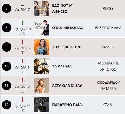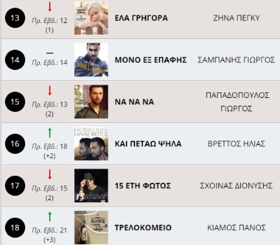 Δείτε ολόκληρο το Top20 του ελληνικού chart παρακάτω: