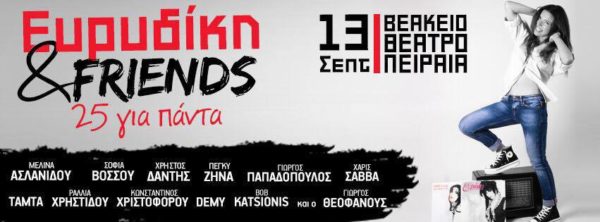 Μάλιστα, στις 13 Σεπτεμβρίου στο Βεάκειο Θέατρο Πειραιά η Ευρυδίκη και οι φίλοι της θα δώσουν μια μεγάλη συναυλία με αφορμή την κυκλοφορία του νέου της δίσκου!