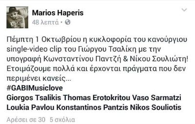 Ο δημοφιλής τραγουδιστής κυκλοφορεί το νέο του τραγούδι και video clip κι ο όπως μας πληροφορεί ο συνεργάτης τους Μάριος Χαπέρης, αυτό πρόκειται να συμβεί την 1η Οκτώβρη.