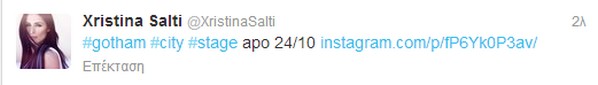 Όπως γράφει και η Χριστίνα Σάλτη μέσα από τον προσωπικό της λογαριασμό στο twitter: