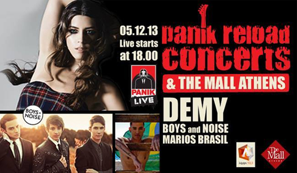 Tην Πέμπτη 5 Δεκεμβρίου στις 6:00 μ.μ. η Demy, oι Βoys & Nois και ο Μarios Brasil πρόκειται να εμφανιστούν σε γνωστό εμπορικό κέντρο των βορείων προαστίων, στο Panic Record Consert, στα πλαίσια των Χριστουγεννιάτικων εκδηλώσεων του πολυκαταστήματος. Οι τέσσερις καλλιτέχτες αναμένεται να ξεσηκώσουν το κοινό και να το διασκεδάσουν με τις επυτιχίες τους αλλά και γνωστά Χριστουγεννιάτικα τραγούδια.
