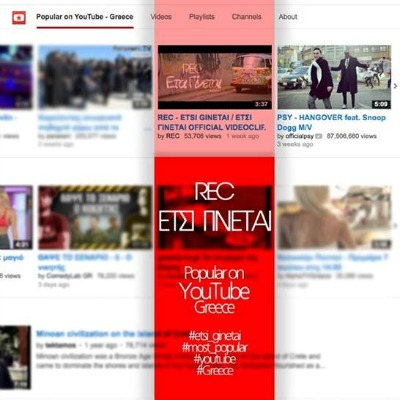 Έχοντας ήδη κατακτήσει τις πρώτες θέσεις των ελληνικών ραδιοφώνων, οι REC φιγουράρουν ανάμεσα στα δημοφιλέστερα videos του YouTube με το νέο τους video clip.