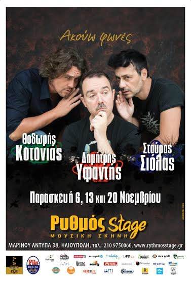 Συνεχίζουν και οι δύο παραστάσεις για δύο ακόμα εβδομάδες. Πιο συγκεκριμένα: Οι τρεις ξεχωριστές και αγαπημένες μουσικές προσωπικότητες των Υφαντή, Σιόλα και Κοτονιά, με κοινή αναφορά τον ευγενή πειραματισμό τους με τη παράδοση, συνεχίζουν για δύο ακόμα Παρασκευές 13 και 20 Νοεμβρίου με τίτλο παράστασης “Ακούω φωνές“.