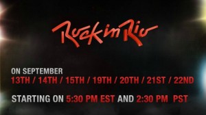 Το Rock In Rio φέτος, διεξάγεται από τις 13 Σεπτεμβρίου και ολοκληρώνεται στις 22 του ίδιου μήνα, και οι ώρες των lives είναι από τις 17:30 έως και 2:30 το πρωί.