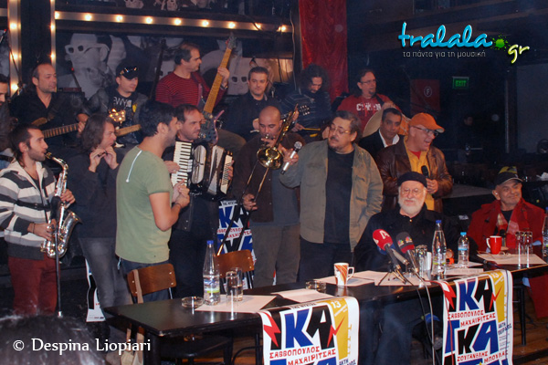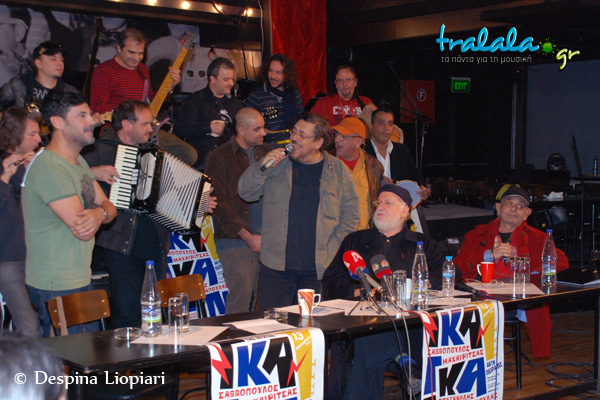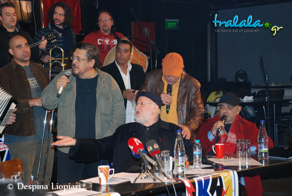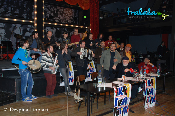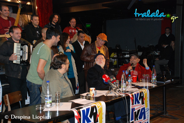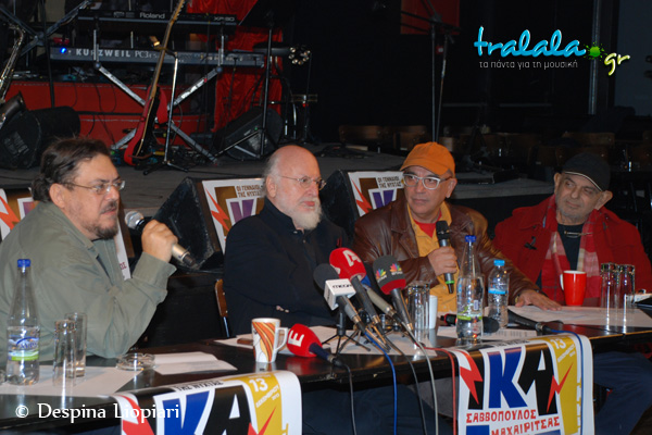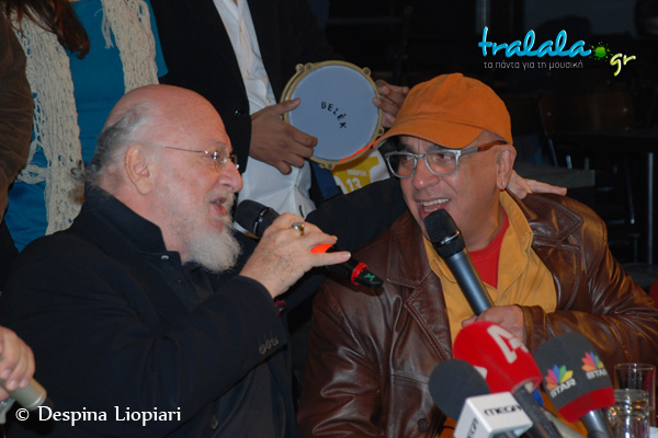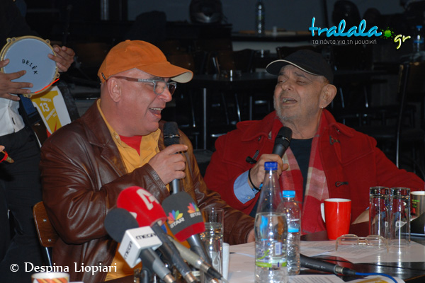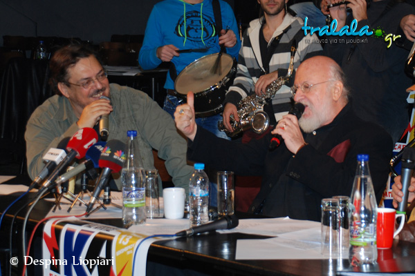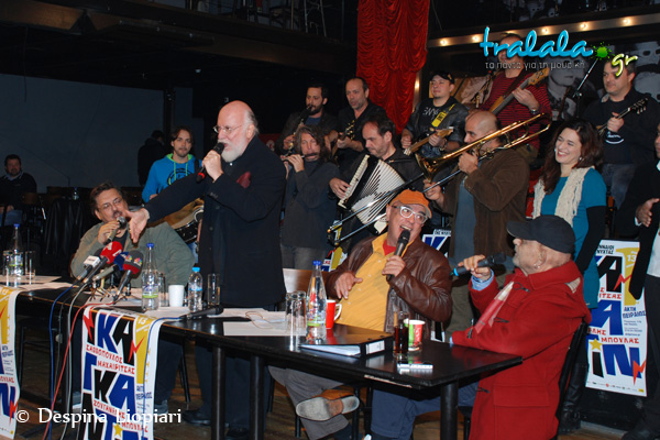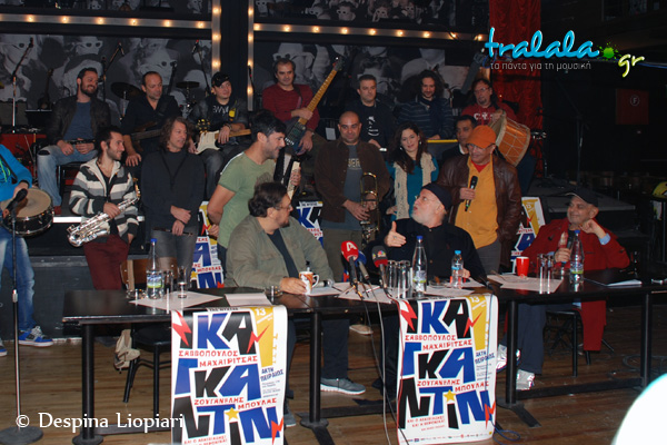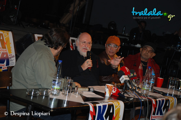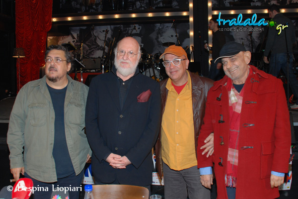 Μπαίνοντας μέσα στην Ακτή Πειραιώς συναντήσαμε τον Διονύση Σαββόπουλο να κάνει πρόβα με την πολυμελή ορχήστρα του το αγαπημένο τραγούδι “Σαν τον Καραγκιόζη”. Συγκινητική ήταν η ατμόσφαιρα αφού ο μεγάλος καλλιτέχνης έκανε αρκετό καιρό να κάνει εμφανίσεις σε κάποια μουσική σκηνή, έτσι η τιμή είναι μεγάλη για τους συναδέλφους, όπως δηλώνουν οι ίδιοι, που επέλεξε να είναι αυτή η στιγμή της επιστροφής του. Το κλίμα που επικρατούσε ανάμεσα στους τέσσερις καλλιτέχνες ήταν ανάλαφρο, με τον Διονύση Σαββόπουλο ενθουσιασμένο και γεμάτο όρεξη για κουβέντα, ο Γιάννης Ζουγανέλης ήταν το πειραχτήρι της παρέας, ο Σάκης Μπουλάς άφηνε άφωνους του πάντες με τις σατιρικές ατάκες του και τον Λαυρέντη Μαχαιρίτσα να κρατά τις ισορροπίες με λίγο ποιο σοβαρό ύφος.