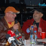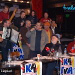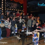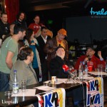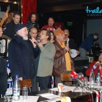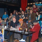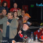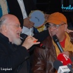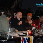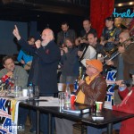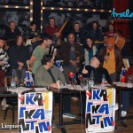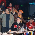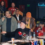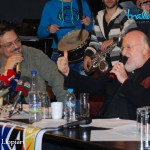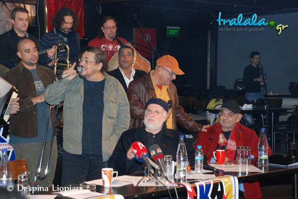 Μπαίνοντας μέσα στην Ακτή Πειραιώς συναντήσαμε τον Διονύση Σαββόπουλο να κάνει πρόβα με την πολυμελή ορχήστρα του το αγαπημένο τραγούδι “Σαν τον Καραγκιόζη”. Συγκινητική ήταν η ατμόσφαιρα αφού ο μεγάλος καλλιτέχνης έκανε αρκετό καιρό να κάνει εμφανίσεις σε κάποια μουσική σκηνή, έτσι η τιμή είναι μεγάλη για τους συναδέλφους, όπως δηλώνουν οι ίδιοι, που επέλεξε να είναι αυτή η στιγμή της επιστροφής του. Το κλίμα που επικρατούσε ανάμεσα στους τέσσερις καλλιτέχνες ήταν ανάλαφρο, με τον Διονύση Σαββόπουλο ενθουσιασμένο και γεμάτο όρεξη για κουβέντα, ο Γιάννης Ζουγανέλης ήταν το πειραχτήρι της παρέας, ο Σάκης Μπουλάς άφηνε άφωνους του πάντες με τις σατιρικές ατάκες του και τον Λαυρέντη Μαχαιρίτσα να κρατά τις ισορροπίες με λίγο ποιο σοβαρό ύφος.