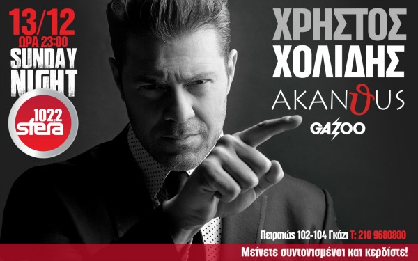 Sfera Sunday Night… Το πρώτο Ραδιόφωνο της Αθήνας παρουσιάζει το Χρήστο Χολίδη live!