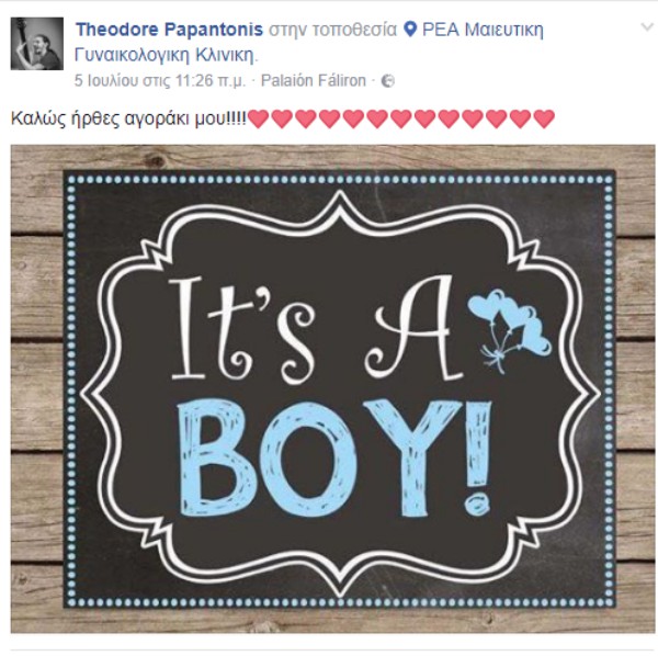 Την χαρμόσυνη είδηση έκανε γνωστή ο σύντροφος της Θοδωρής Παπαντώνης μέσω του λογαριασμού του στο facebook.