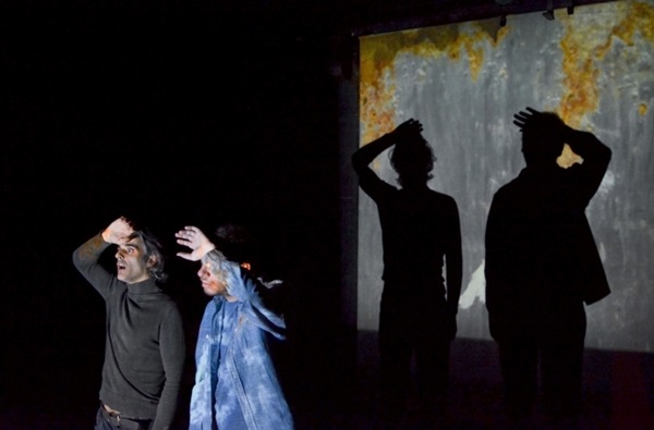 Μεταξύ αστείου και σοβαρού λέω, πως κάναμε πρόβες «λόξυγγα» κι αυτό γιατί κάθε φορά άλλαζαν οι ημερομηνίες για την έναρξη της παράστασης. Ώσπου διαμορφώθηκε ένα πιο καθαρό πλαίσιο, απο τη στιγμή που μιλήσαμε με το «Θέατρο 104» και στο βαθμό τελικά που το εν λόγω φεστιβάλ ακυρώθηκε. Επί της ουσίας τώρα, στην αρχή προσπαθήσαμε να διαχωρίσουμε τις καθαρές δομές που έχει αυτό το αυστηρά φορμαλιστικό κείμενο. Τα κομμάτια που μιλάνε μεταξύ τους γύρω απο το θέμα της παρατήρησης, τα αντιμετωπίσαμε σαν ενα άγριο διαλογικό παιχνίδι του εδώ και τώρα, και τα σημεία της ύπνωσης ως μία εννιαία παρτιτούρα, ένα «παραμιλητό» όπως ονομάζει το έργο του κι ο συγγραφέας. Δουλέψαμε αυτά τα κομμάτια ξεχωριστά, σαν δύο διαφορετικά έργα. Εξαρχής προσπαθήσαμε να εντοπίσουμε τα κενά σ΄αυτόν τον καταιγιστικό διάλογο και να διαμορφώσουμε μια απτή σκηνική γλώσσα των δυο προσώπων, μια σωματική συνομιλία που συνεχίζεται ακόμα και στις παύσεις ή τις σιωπές τους.Ένα κείμενο που δεν έχει πλοκή και χαρακτήρες όπως αυτό, στηρίζεται και τολμώ να πώ διαμορφώνεται απο το υλικό των ηθοποιών. Ακόμα περισσότερο σ’ αυτή την σκηνική εκδοχή που παρουσιάζουμε και που στηρίζεται αποκλειστικά σ’αυτούς. Είχα την τύχη να έχω δίπλα μου δύο εξαιρετικούς συναδέλφους τον Αντώνη και τον Άρη. Και οι δύο κουβαλούν ένα διαφορετικό υλικό και άλλες θεατρικές καταγωγές. Ο Αντώνης φέρει εκτός από σημαντικές θεατρικές εμπειρίες και τεχνικές, μια ισχυρή σκηνική δυναμική και ο Άρης μια αξιοζήλευτη σκηνική αθωότητα. Οπότε οι πρόβες στο σύνολό τους επικεντρώθηκάν στο να συντονιστούν αυτές οι δύο τόσο διαφορετικές σκηνικές ενέργειες. Και ευχαριστώ και τους δύο από καρδιάς για την εμπιστοσύνη και την σκηνική διαθεσιμότητα που μου χάρισαν.