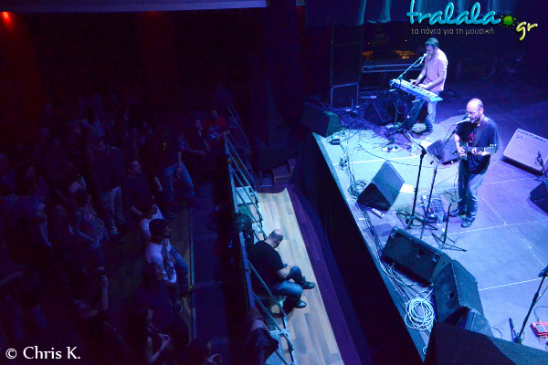 Την αρχή έκαναν οι Apolia οι οποίοι βγήκαν για μισή ώρα ξεκινώντας από τις 8 και ταξίδεψαν ευχάριστα τον λιγοστό κόσμο που βρισκόταν στο χώρο όσο έπαιζαν. Το σκοτεινό σκηνικό έδενε πολύ καλά με το μελωδικό τους υλικό που τιμάει την παράδοση του ελληνικού ροκ. Πολύ καλοί ως “πρώτο πιάτο” μιας μεγάλης βραδιάς…