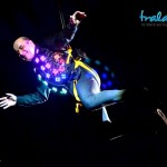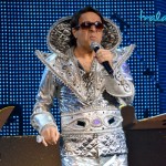 Στη συνέχεια, αφού προσγειώθηκε στη σκηνή, μας καλωσόρισε και ζήτησε δυο εθελοντές από το κοινό, βάζοντάς τους να διαγωνιστούν μέσω μιας δοκιμασίας για να κερδίσουν δωρεάν το μπουκάλι τους.