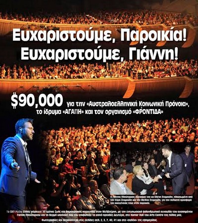 Tα έσοδα της συναυλίας του Γιάννη Πλούταρχου στη Μελβούρνη διατέθηκαν σε 3 φιλανθρωπικά ιδρύματα!