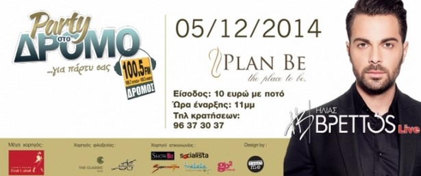Party στο ΔΡΟΜΟ με Ηλία Βρεττό | 05/12 στο Plan Be!