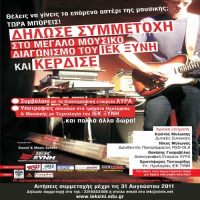 Ο Εκπαιδευτικός Όμιλος ΞΥΝΗ διοργανώνει Μεγάλο Μουσικό Διαγωνισμό, προσφέροντας στους νικητές δισκογραφικό συμβόλαιο με […]