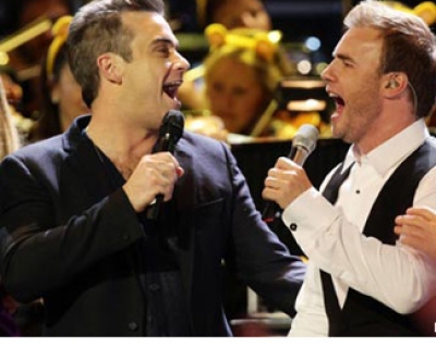 Ο Robbie Williams & ο Gary Barlow σε συναυλία.