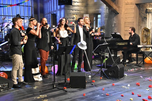 Το μικρόφωνο παίρνουν όμως και οι ηθοποιοί Ματθίλδη Μαγγίρα, Θωμαΐς Ανδρούτσου, Κώστας Ευρυπιώτης, Γιάννης Χατζηγεωργίου, Άρης Πλασκασοβίτης και ο δικό μας παρουσιαστής Ευτύχης Μπλέτσας μέσα σε μια ατμόσφαιρα γεμάτη με σερμπαντίνες και απίστευτες μελωδίες.
