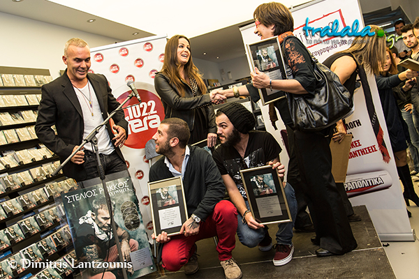 Σε μια μικρή σκηνή, στημένη στο κέντρο του μαγαζιού ανάμεσα σε stands και ράφια γεμάτα cd του Στέλιου, πρώτη το μικρόφωνο πήρε η κυρία Μαργαρίτα Μάτσα, διευθύνουσα σύμβουλος της Minos Emi. Μας καλωσόρισε λέγοντας: «Σήμερα είναι μια ιδιαίτερη απονομή για πολλούς λόγους! Ο πρώτος είναι ότι ο Στέλιος ξαναμπήκε στα μουσικά πράγματα πολύ δυναμικά και σαρωτικά μετά από πολύ καιρό που ψάρευε κάπου μακριά, χαρίζοντάς μας την μια επιτυχία πίσω απ’ την άλλη. Ο Στέλιος είναι μια καλλιτεχνάρα, άνθρωπος που ζει με τη μουσική. Θέλαμε εδώ και πολύ καιρό να συνεργαστούμε μαζί αλλά δεν τα καταφέρναμε όταν αποφάσισε να ρισκάρει τη σιγουριά του και να συνεργαστεί μαζί μας σε μια δύσκολη επαγγελματική εποχή». Καλώντας κοντά της το τιμώμενο πρόσωπο Στέλιο Ρόκκο, πρόσθεσε απευθυνόμενη στον ίδιο αλλά και σε εμάς: «Το αποτέλεσμα νομίζω μας δικαίωσε όλους και σήμερα είμαστε στην ευχάριστη θέση να γιορτάζουμε ένα πολυπλατινένιο άλμπουμ από έναν υπέροχο καλλιτέχνη».