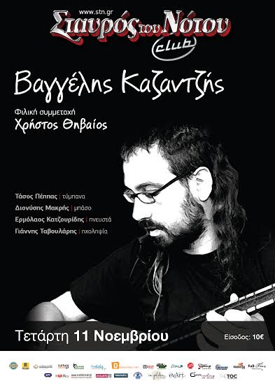 Την Τετάρτη 11 Νοεμβρίου, ο ξεχωριστός τραγουδοποιός ανεβαίνει στη μουσική σκηνή του Σταυρού του Νότου (Club), για να παρουσιάσει ένα ιδιαίτερο πρόγραμμα, με τη συμμετοχή του Χρήστου Θηβαίου.