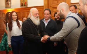 Αιτία της επίσκεψής τους η μεγάλη συναυλία στις 3 Ιουλίου στο ΟΑΚΑ που ετοιμάζουν η Δέσποινα Βανδή, ο Αντώνης Ρέμος, η Μελίνα Ασλανίδου και ο Μιχάλης Κουινέλης μαζί με τους παίκτες που είχαν στην ομάδα τους. Μέρος των εσόδων θα διατεθεί για το φιλανθρωπικό έργο της Ιεράς Αρχιεπισκοπής Αθηνών. Δείτε φωτογραφίες αλλά και βίντεο από τη συνάντηση των τεσσάρων καλλιτεχνών με τον Αρχιεπίσκοπο Ιερώνυμο και τις ευχαριστίες του τελευταίου προς αυτούς:
